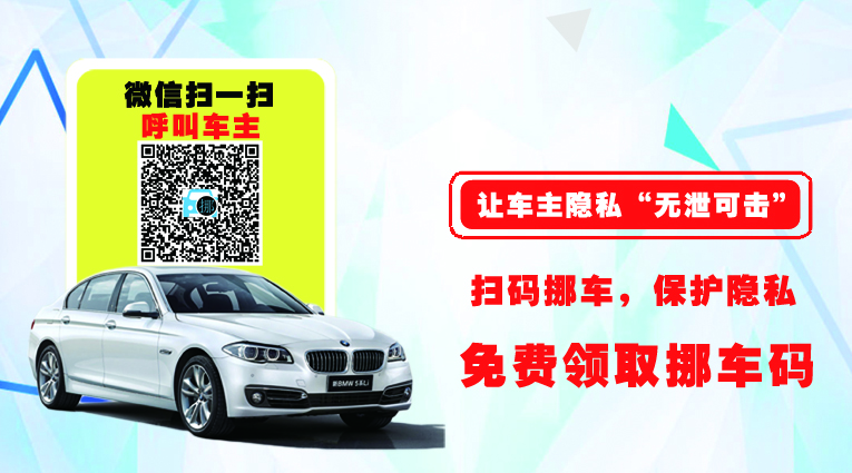 微信扫挪车码,车主绑定二维码后,贴在前方玻璃上
